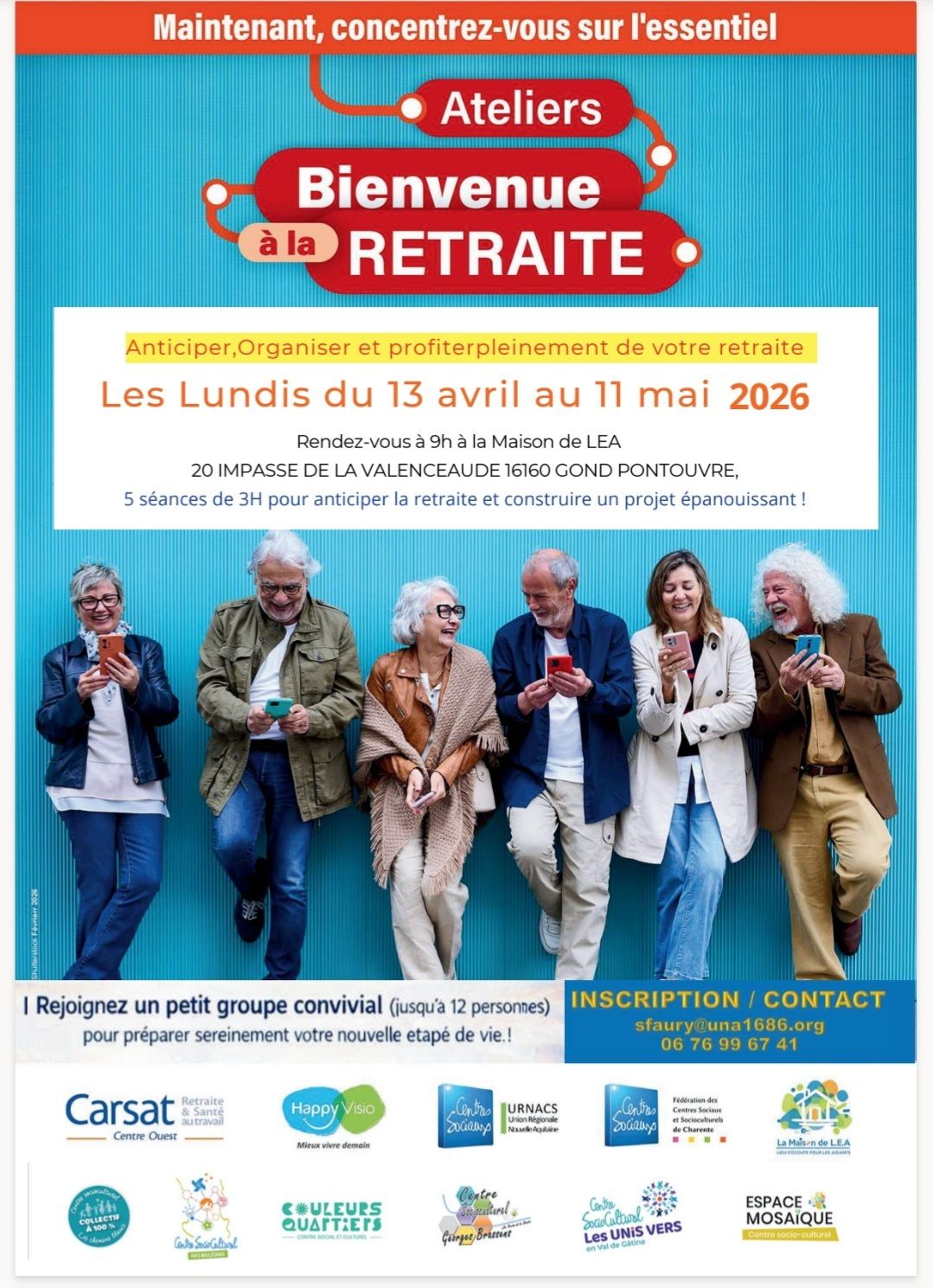 Bienvenue à la retraite - - - - - - - Anticiper, organiser et profiter pleinement de votre retraite Participez aux ateliers qui se dérouleront à la Maison de L.E.A les lundis du 13 avril au 11 mai 2026 Il s’agit de 5 séances de 3h, en petit groupe convivial (12 personnes maximum), pour aider […]