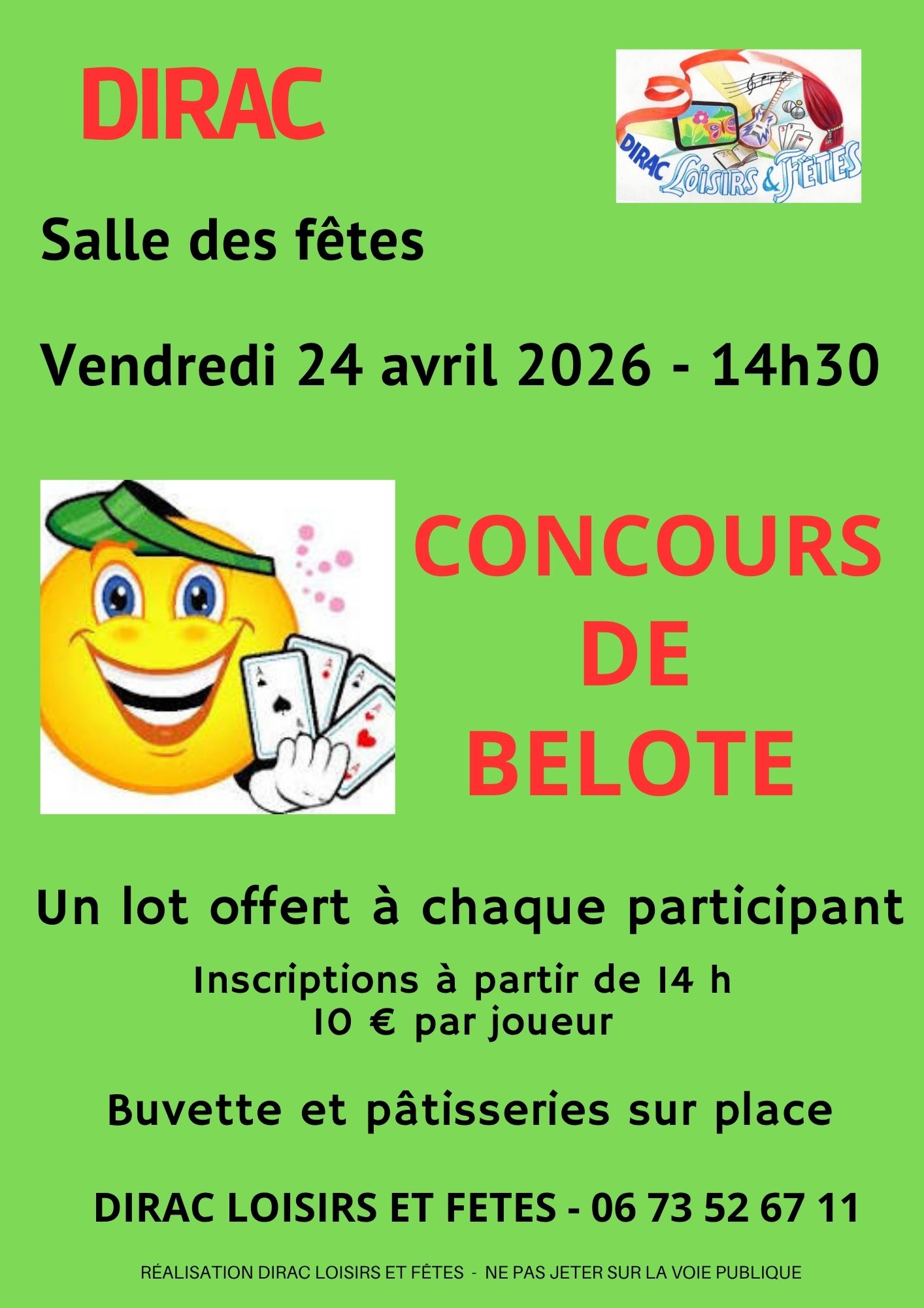Salle des fêtes - 14.30h Inscriptions à partir de 14h - 10€ par joueur Un lot offert à chaque participant